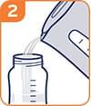 Boil fresh water. Leave to cool for up to 30 minutes prior to mixing. Do not use softened water. Pour the desired amount of hot water into clean sterile bottle.